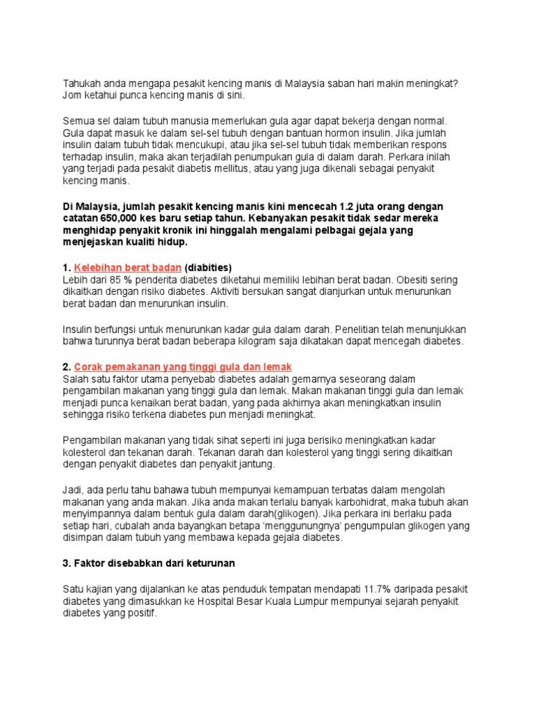 . Langkah-langkah untuk menangani masalah tersebut. Sebab-sebab lain termasuk kecacatan genetik fungsi pankreas di mana diabetes mellitus berlaku ketika seseorang itu masih muda maturity onset of diabetes in the young. Menghuraikan punca-punca aktiviti pendatang asing di negara kita menimbulkan keresahan masyarakat.